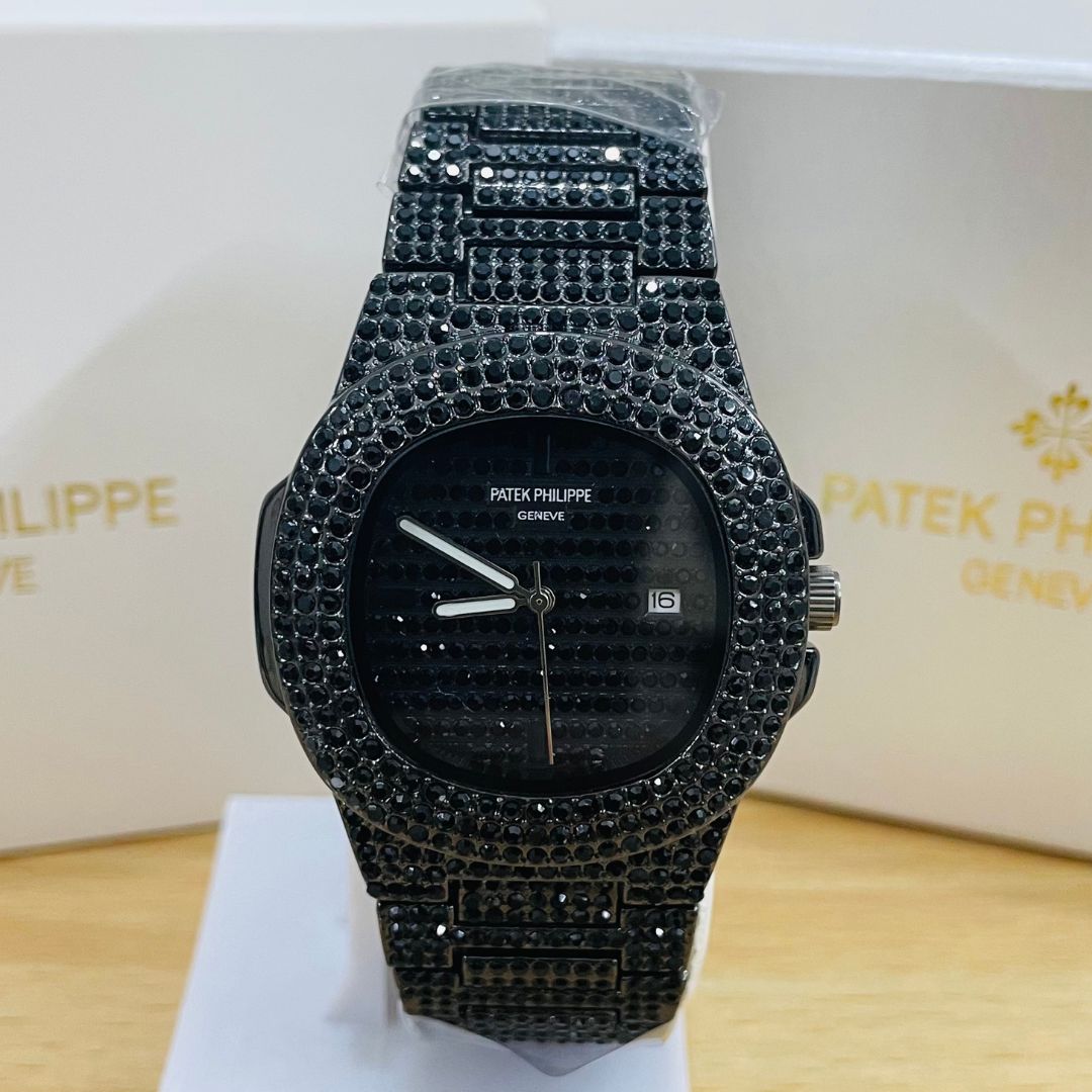 PP Black Iced Out Stone Watch