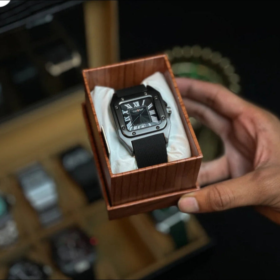 Premium quartz watch with Cartier’s signature square design.
