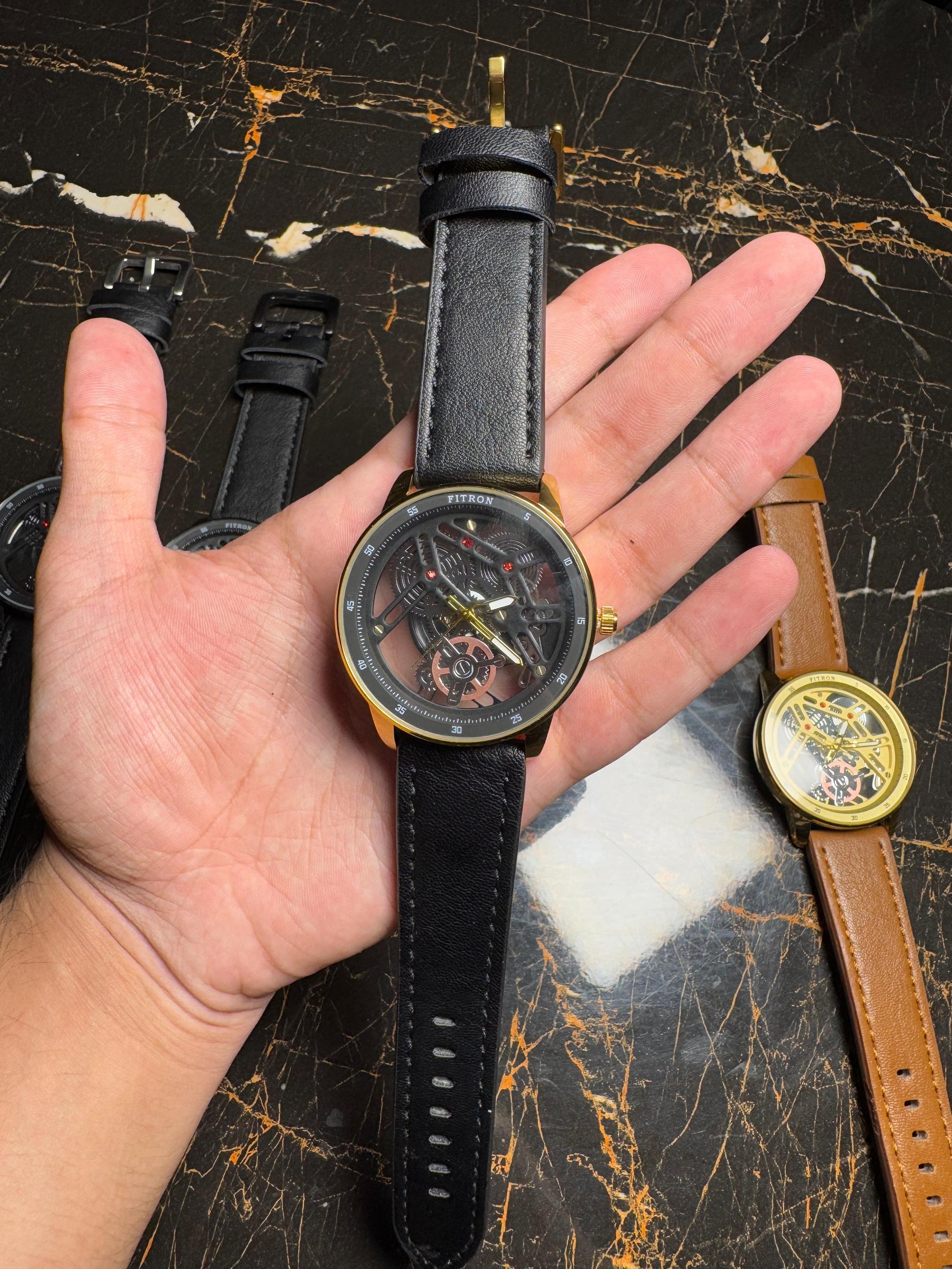 Premium Leather strap Watch with Transparent Dial