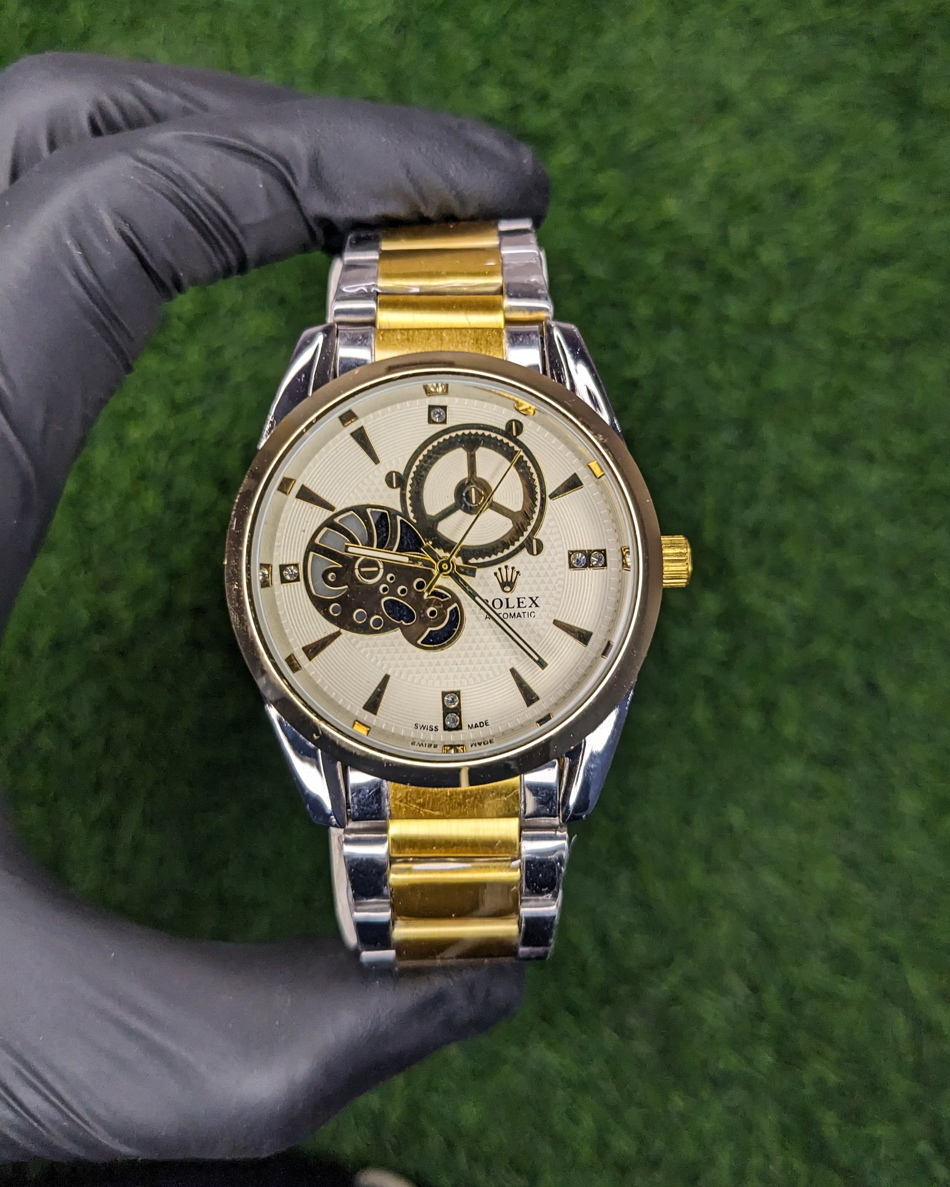 Upgrade your style game with our White Dial - Golden Stainless Steel Watch. This dual tone watch features a stunningly beautiful dial and dual shade glass, all held together by a secure button lock. Elevate your look effortlessly with this must-have accessory.